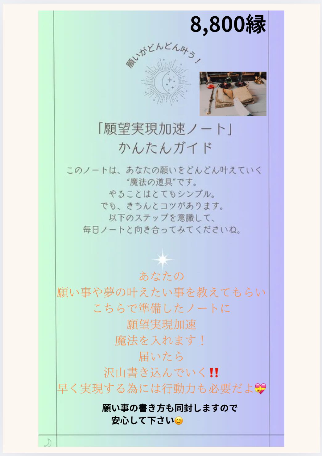 超魔法でノートに願いの加速スイッチを入れて発送します。届いたら、ノートに沢山書いて下さい 叶える為には行動も必要です!